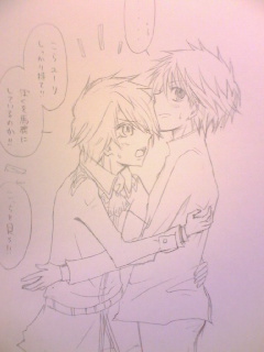 左がフォンビーレフェルト卿ヴォルフラム閣下で右がユーリです。